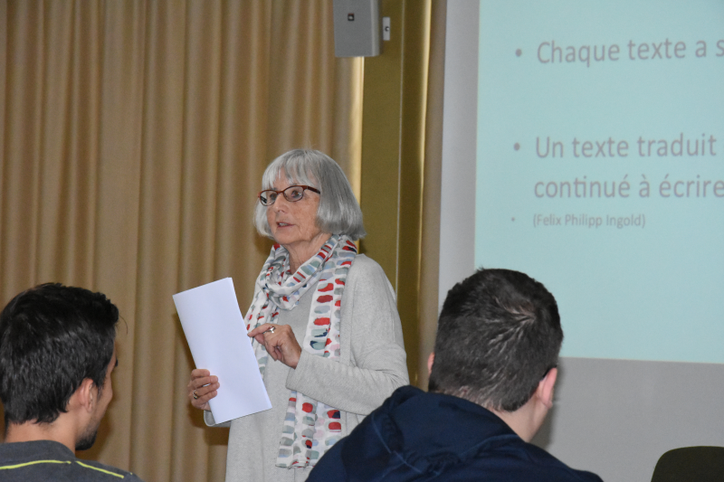 Cinq classes de 5ème années, soit une centaine d’élèves, après avoir abordé en classe des extraits de Peter Bichsel, ont eu la chance de participer à un atelier de traduction, revisité un peu en conférence participative et animé par Alexandre Pateau et Ursula Gaillard, originaire de Bullet, enseignante, auteur et traductrice d’ouvrages littéraires, historiques et politiques.