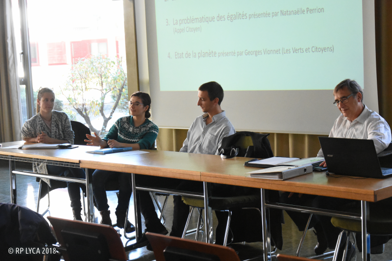 En vue de l'élection de la Constituante du 25 novembre 2018, le Collège a eu la chance d’accueillir quelques représentants des listes de saint-Maurice et de Monthey afin de permettre aux étudiants d’aborder les différentes thématiques qui les touchent particulièrement et qui seront discutées ou même changées lors de la rédaction de la nouvelle constitution. La présence de Letizia Fasano (Valeurs Libérales Radicales), Natanaëlle Perrion (Appel Citoyen), Georges Vionnet (Les Verts et Citoyens) François Farquet (PDC) et de plusieurs étudiants et professeurs a fait place à des débats et des questionnements sur les votations d’aujourd’hui pour notre vie de demain sur des sujets comme l’institution, l’égalité, l’environnement ou encore l’éducation.