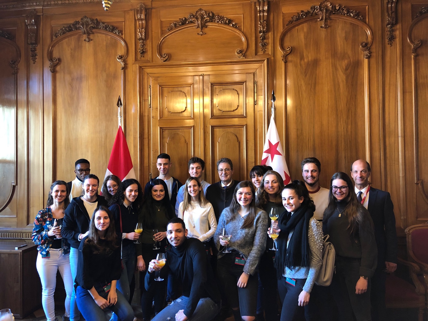 Le jour convenu, nous nous retrouvâmes donc à la gare de Saint-Maurice à 7h20 afin de prendre le train à destination de la capitale. Après un trajet effectué dans la bonne humeur et une marche vivifiante sous un soleil radieux, nous arrivâmes au Palais fédéral. S’ensuivit alors un contrôle de sécurité pour entrer dans le bâtiment. Après un moment d’attente, on nous aiguilla jusqu’à la tribune du Conseil des États, d’où nous pûmes observer les débats des Parlementaires et l’intervention du futur Président de la Confédération, Ueli Maurer. Puis, Jean-René Fournier, fraîchement élu Président du Conseil des États, nous reçut dans son bureau pour un apéritif. Il nous présenta la charge de son nouveau mandat politique et répondit à nos questions. Notre matinée se termina par une visite guidée du hall du bâtiment, riche en symbolique.