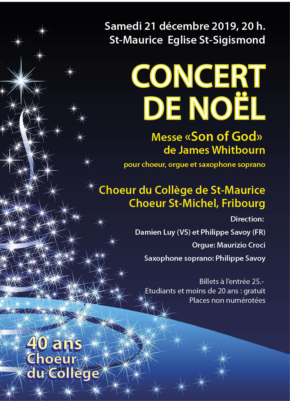 Associé pour l'occasion au Choeur St-Michel de Fribourg, le Choeur du Collège marquera ainsi la clôture de son 40e anniversaire. Au programme, une messe de James Withbourn et des chants de Noël.