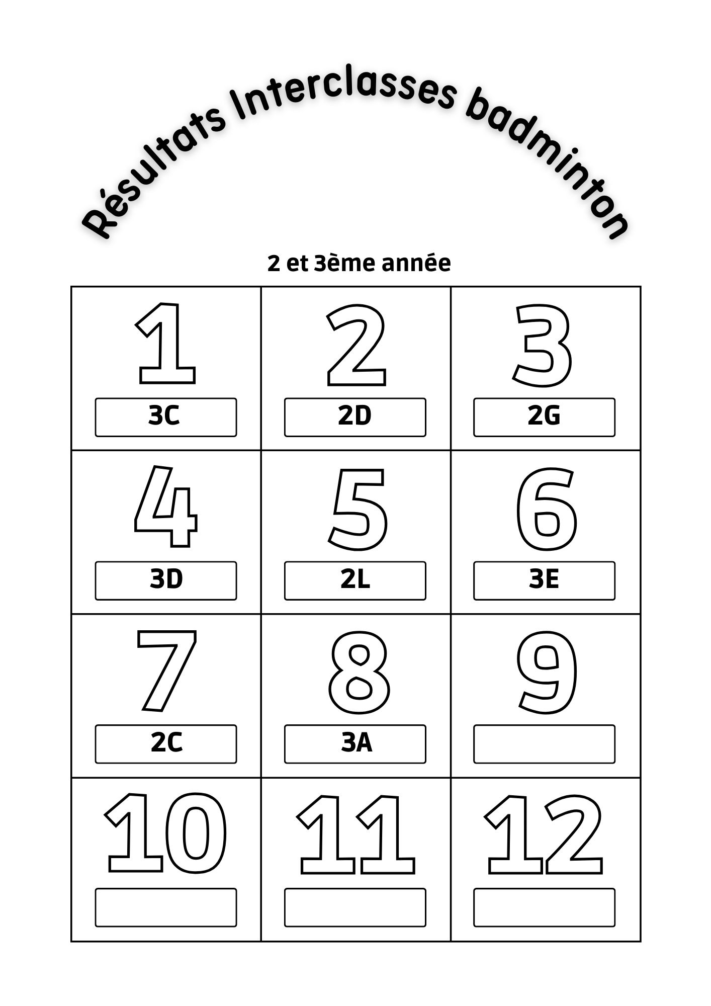 02 Oct,2023 Clics : 1440 Interclasses badminton 23-24 Le 1er interclasse de l'année 2023-2024 a livré son verdict ! Bravo à tous les participants et merci aux organisateurs.