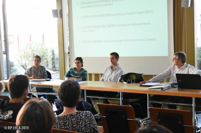 En vue de l'élection de la Constituante du 25 novembre 2018, le Collège a eu la chance d’accueillir quelques représentants des listes de saint-Maurice et de Monthey afin de permettre aux étudiants d’aborder les différentes thématiques qui les touchent particulièrement et qui seront discutées ou même changées lors de la rédaction de la nouvelle constitution. La présence de Letizia Fasano (Valeurs Libérales Radicales), Natanaëlle Perrion (Appel Citoyen), Georges Vionnet (Les Verts et Citoyens) François Farquet (PDC) et de plusieurs étudiants et professeurs a fait place à des débats et des questionnements sur les votations d’aujourd’hui pour notre vie de demain sur des sujets comme l’institution, l’égalité, l’environnement ou encore l’éducation.