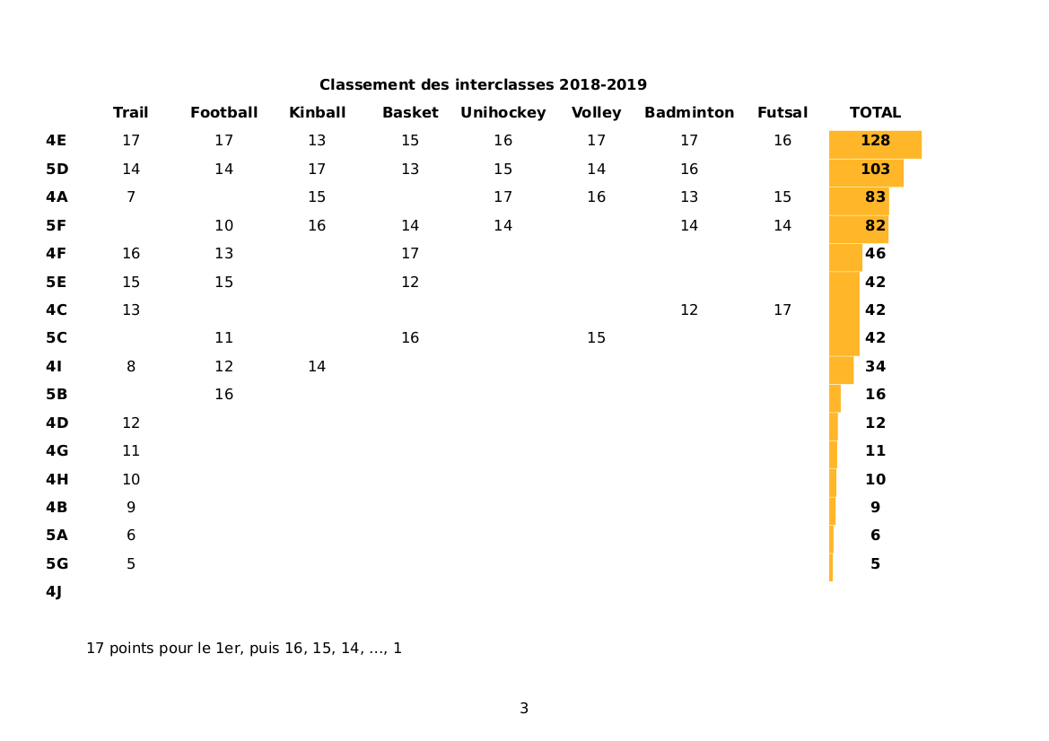 Bravo à tous les participants de cette année...et bravo aux vainqueurs des 3 catégories qui ont remporté une journée sportive pour toute la classe !