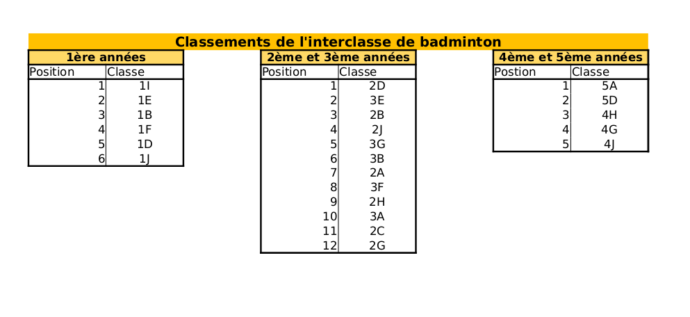 Les interclasses de badminton se sont déroulés durant l'après-midi du 9 octobre 2019. Retrouvez les podiums, les résultats complets et les classements après 3 épreuves ci-dessous.