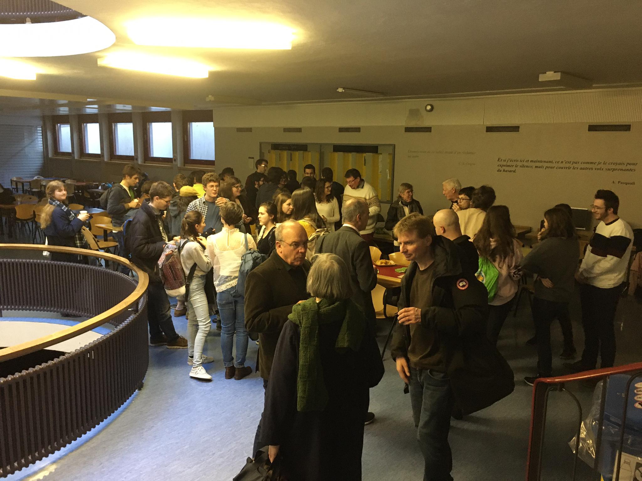 Puis vint un sympathique moment de partage autour d'un apéro, suivi pour les élèves et les professeurs qui le désiraient, d'un repas convivial dans une pizzeria agaunoise. De Grèce, nous passions à l'Italie... Ce fut pour certains l'occasion d'échanger avec les élèves des autres établissements. Les quatrièmes présents firent notamment la connaissance des Fribourgeois et en les quittant, se réjouirent de les retrouver lors de la prochaine rencontre des hellénistes ! Un tout grand merci aux intervenants et aux professeurs impliqués dans l'organisation de cette journée !