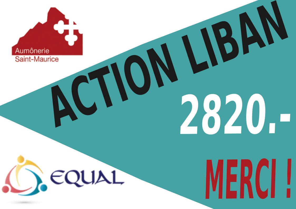 L'action en faveur du Liban lancée au début de l'année scolaire a permis de verser 2820.- à la Fondation EQUAL dirigée par des bénévoles et qui oeuvre au service la population de Beyrouth.
